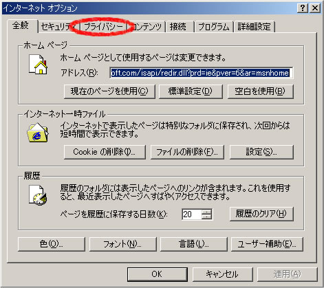 ◆Internet Explorer 6 での設定方法