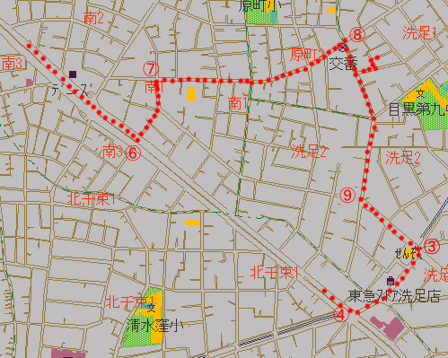 †環七・洗足交差点を左折